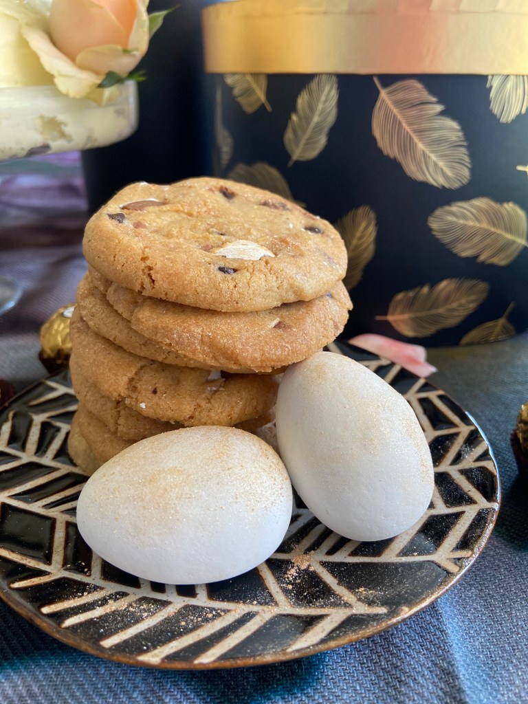 These cookies are an Easter holiday version of a firm family favourite. My kids get very excited when white candy-coated Easter eggs hit the shelves, so popping these into their favourite cookie is a welcome treat. I always share this tip when making choc chip cookies – don’t overbake them and serve them straight out of the oven while still gooey and warm.