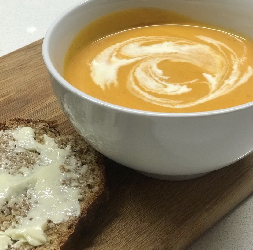 Place all of the vegetables, herbs and seasoning into a large, deep pot, and then pour over the vegetable stock, ensuring that the vegetables are immersed in liquid. Put the lid on and allow to simmer until the vegetables are very tender. Keep checking the liquid levels and don’t let the soup evaporate – add more stock if needed. Set this aside to cool. Pour the entire mixture into a food processor and pulse until the soup is smooth and free of lumps. (You will probably have to do this a few times as this recipe makes a big batch of soup). Return the soup to the pot and stir additional stock through, if you’d like it to be thinner. Otherwise just stir a bit of cream through, as you heat the soup for serving. The result should be a thick, velvety soup that you can serve with delicious bread or perhaps topped with a few croutons.