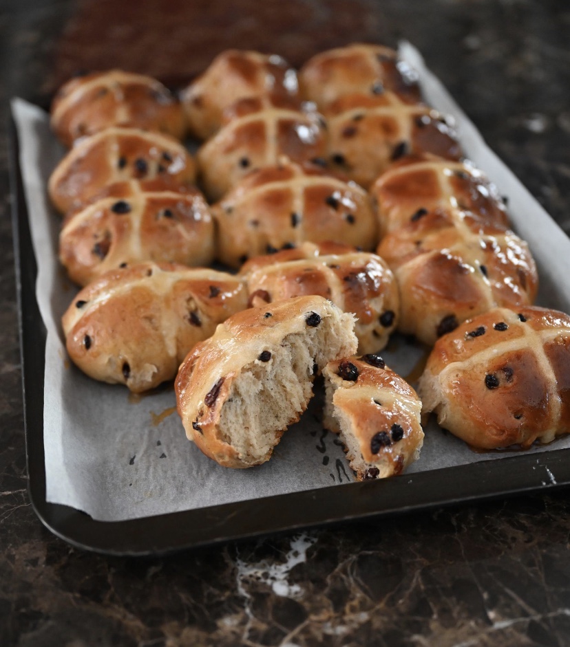 I ran my Easter cooking workshops this week and we had great fun with all sorts of Easter recipes, but I particularly loved teaching the baking of hot cross buns from scratch. It sounds terribly daunting but they’re actually a doddle – if you can get past the waiting time for the dough to rise.
