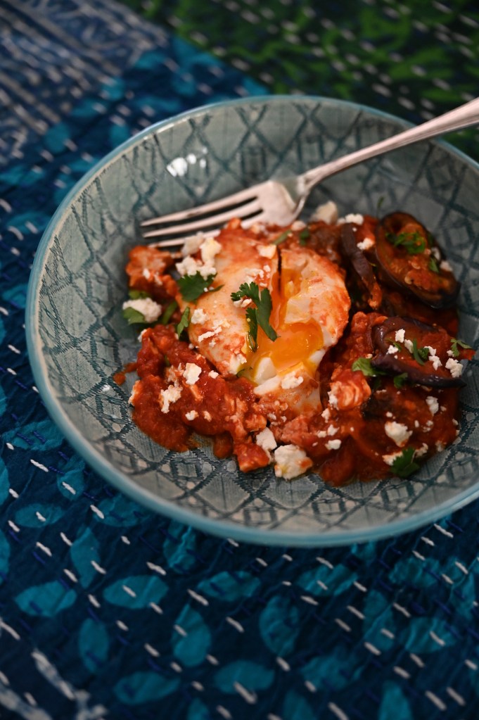 We’ve been enjoying some lovely summer weekends in Joburg and long Sunday brunches have been such a treat. I find Shakshuka is a great option for feeding a crowd, because you can make a very big batch and still serve eggs individually to everyone’s liking. The tomato sauce is best when it’s cooked slowly so the weekend is the perfect time to make this dish. Some leftover brinjals from a salad or Melanzane inspired me to make this version, so if you have leftover brinjal that you’d like to use up, try this. Alternatively a few peppers sliced in add a wonderful flavour variation too.